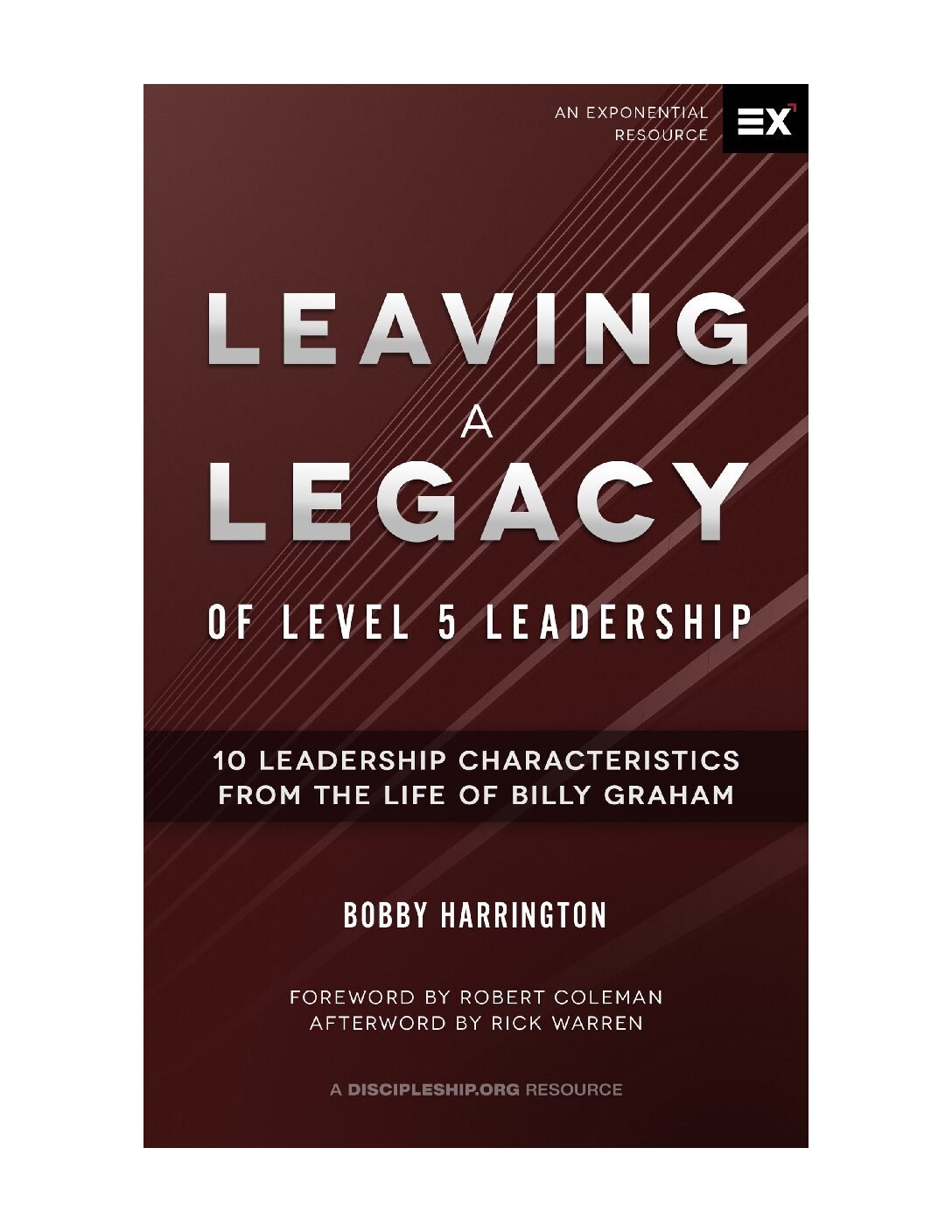 Leaving a Legacy of Level 5 Leadership explores the life of Billy Graham through the lens of “Level 5 leadership,” also known as “hero making”. Authored by Bobby Harrington, with contributions from Robert Coleman and Todd Wilson, the book presents Graham as a prime example of a leader who prioritized multiplication and investing in others over personal recognition.